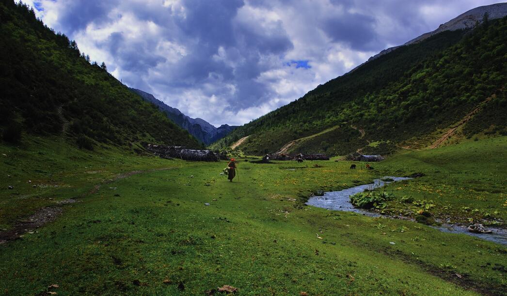 进入克麦——查呈沟景区,仿佛进入了天然氧吧,灌丛、草甸森林都完好未曾破坏,在郁郁葱葱遮天蔽日的原始森林里,林下覆盖着厚厚的松软苔藓,一脚踩下去松软富有弹性,林下生长着各种不知名的蘑菇,也藏着数不清的野生动物。在宽广的草甸区,不知名的各种花草和牛羊、牧人构成了一幅极美的图画,清香的味道随着深呼吸沁人心脾,让人心旷神怡、如痴如醉。