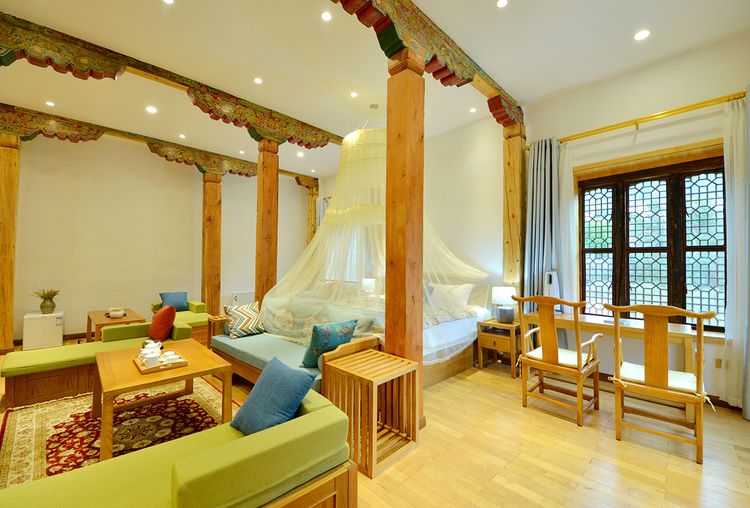藏珠凝.然乌温泉民宿:真正的纯土木结构的白藏房民宿,在藏民家的三楼增加的豪华客房,每幢房屋有3间超大客房,超大庭院和露台,出门便是藏乡田园风光、溪水、果园,尽享蓝天、白云、星空,赠送然乌温泉门票。